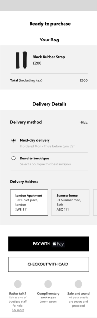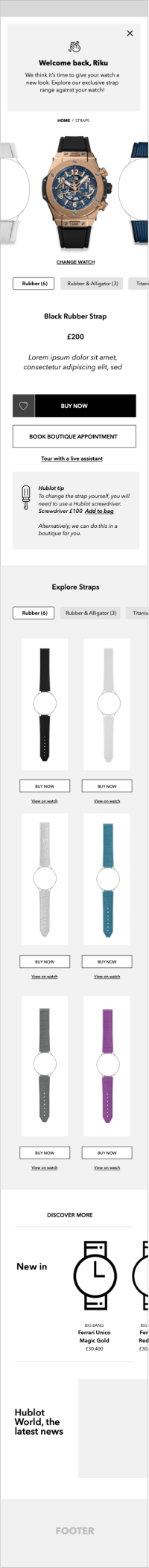 Beyond the design and requirements, I also had to figure out how to link through to an Adobe Commerce (magento) site that was selling watch straps and think about how combined baskets could work across sub-domains.